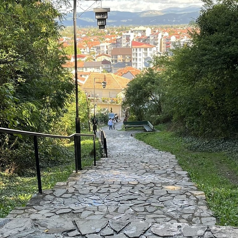 Grandma was determined to explore Ohrid's old town with a fine-tooth comb today. No stone was going to be left unturned. Starting with our morning walk to town. Instead of taking our usual route from Eyebee Apartments along Goce Delchev, today we continued up Sts. Cyril and Methodius, up the steps to the Upper City Gate. It was a short but steep walk, the kind of exercise that Grandma enjoys to start her morning with.